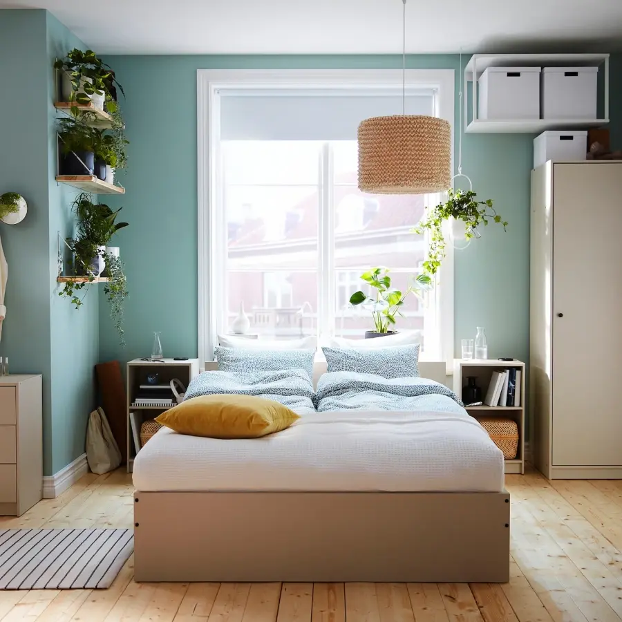 ИКЕА IKEA Вы можете легко пропылесосить под рамой кровати, чтобы содержать пространство в чистоте и без пыли. Под кроватью достаточно места для ящиков для хранения — идеально для хранения дополнительных одеял и подушек. Оригинальная икея/ikea