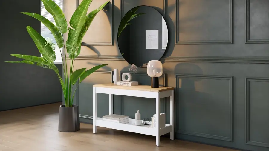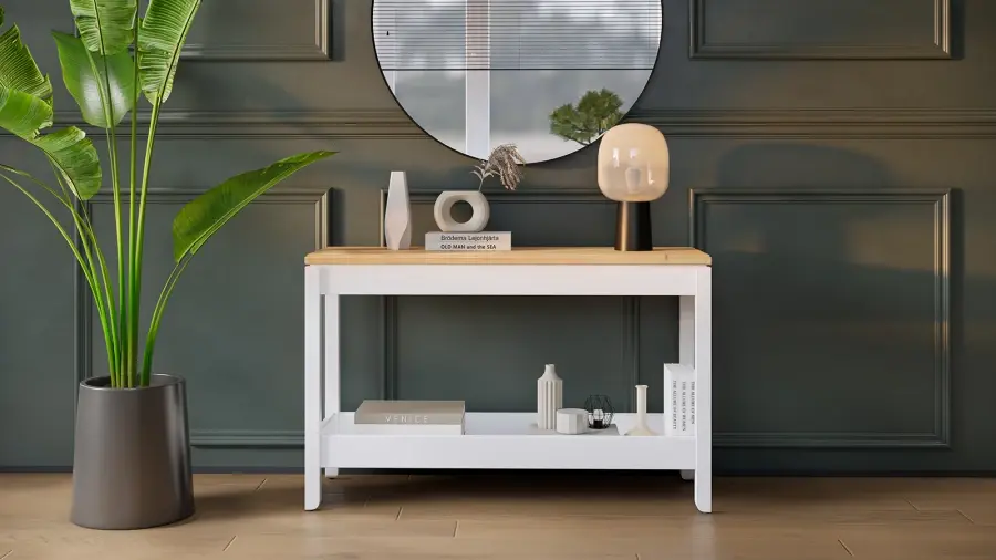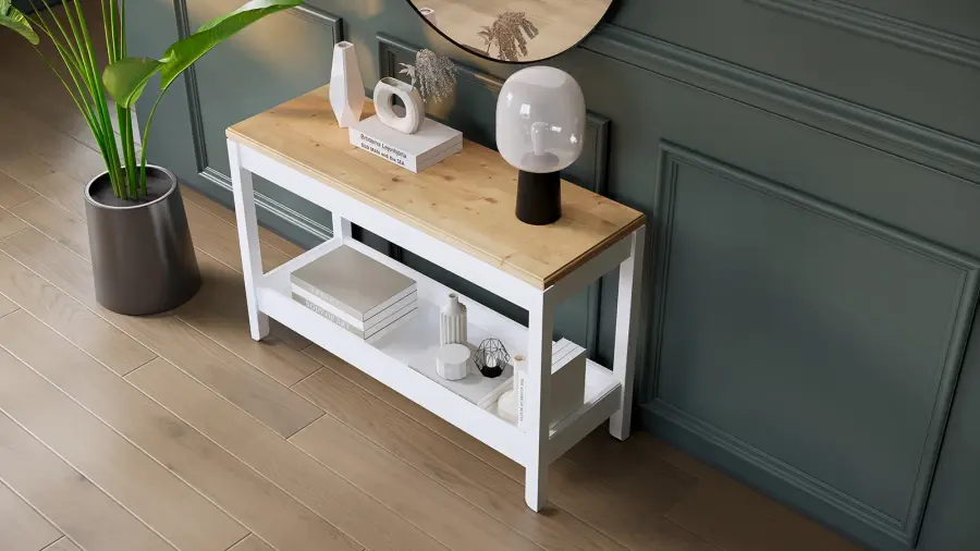 - Изготовлен из массива сосны. Дерево пропитано морилкой и покрыто прозрачным лаком на водной основе.