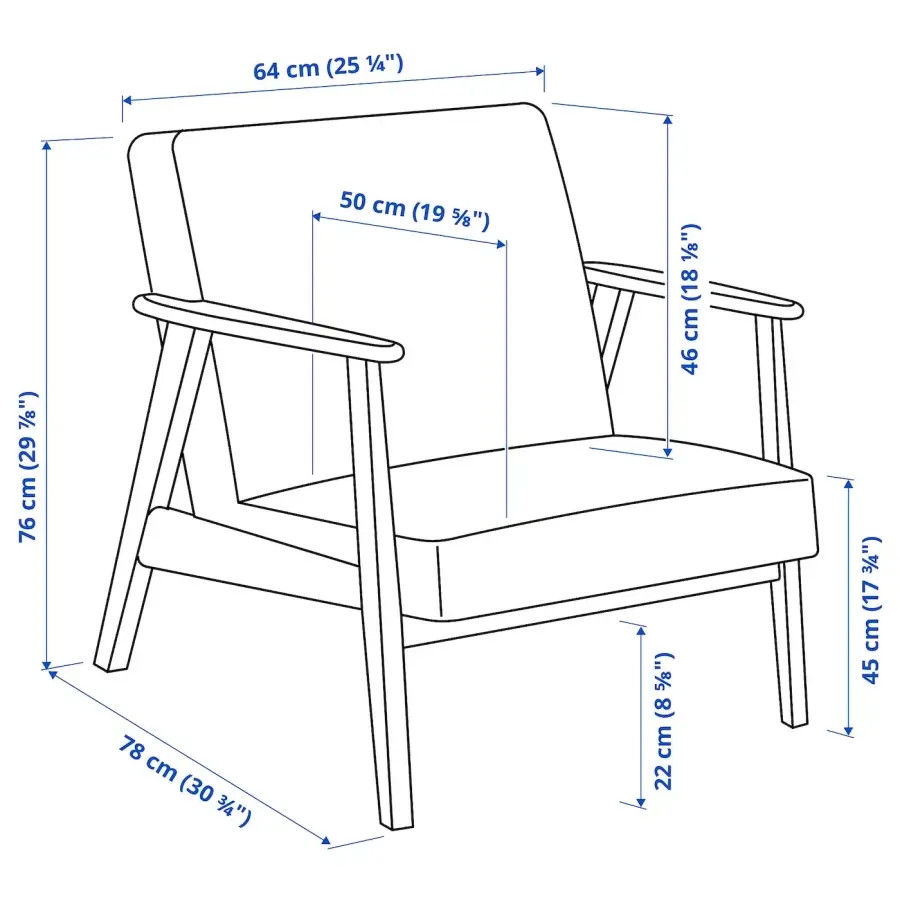 ИКЕА IKEA Четкие линии и поддерживающий комфорт, независимо от того, читаете ли вы, общаетесь с друзьями или просто отдыхаете.Каждое кресло обладает уникальным выражением лица, поскольку деревянная рама сначала окрашивается в темно-коричневый тон, а затем покрывается прозрачным лаком, делающим видимыми натуральные волокна дерева.Высокоэластичная пена в сиденье и спинке позволяет креслу восстанавливать свою форму, когда вы встаете, а дополнено зигзагообразными пружинами на сиденье и поддерживающей тканью на спинке для надежного комфорта .Вы будете сидеть стабильно и устойчиво долгие годы, так как рама изготовлена из прочного массива дерева. Вам также понравится расслабленное сидячее положение благодаря наклонной спинке. Высокие ножки из цельного дерева позволяют легко пылесосить или доставать вещи, спрятанные под креслом, чтобы избежать беспорядка. Элегантный фиксированный чехол имеет идеальную посадку, которая прослужит долго. Вы можете выбрать из различных чехлов и найти тот, который подходит вам и вашему дому. Гарантия 10 лет. Ознакомьтесь с условиями в гарантийной брошюре. Оригинальная икея/ikea