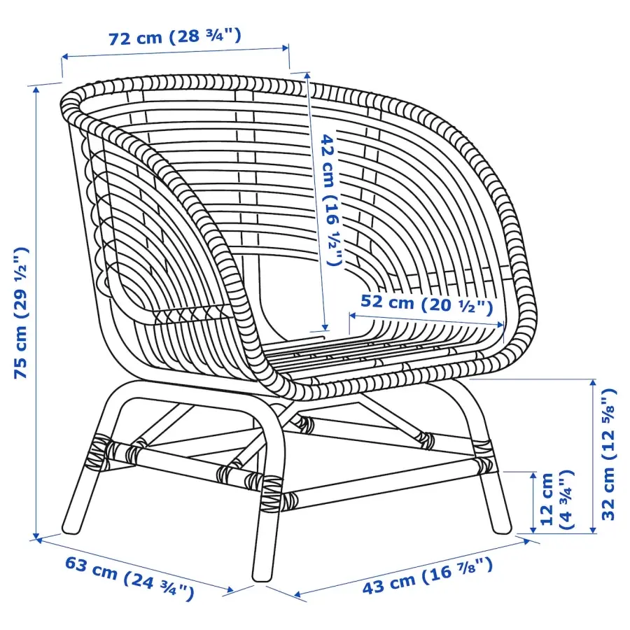 ИКЕА IKEA Изготовлено вручную опытными мастерами, что делает каждое кресло уникальным. Ротанг — это натуральный материал, который красиво стареет и со временем приобретает свой уникальный характер. Кресло легкое и его легко перемещать, если вы хотите помыть пол или переставить мебель. Пластиковые ножки защищают пол от царапин. Подушку можно перевернуть, поэтому она имеет две стороны для равномерного ношения. Оригинальная икея/ikea