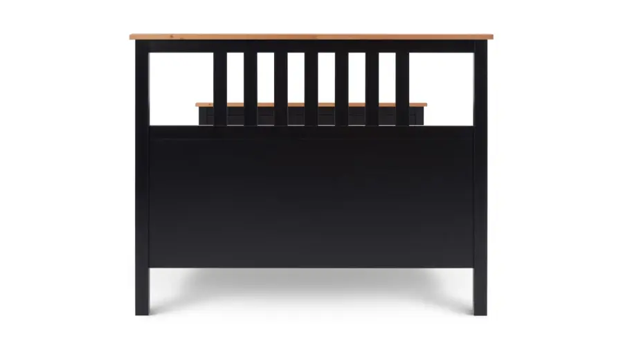 - Изготовлен из массива сосны. Дерево пропитано морилкой и покрыто прозрачным лаком на водной основе.