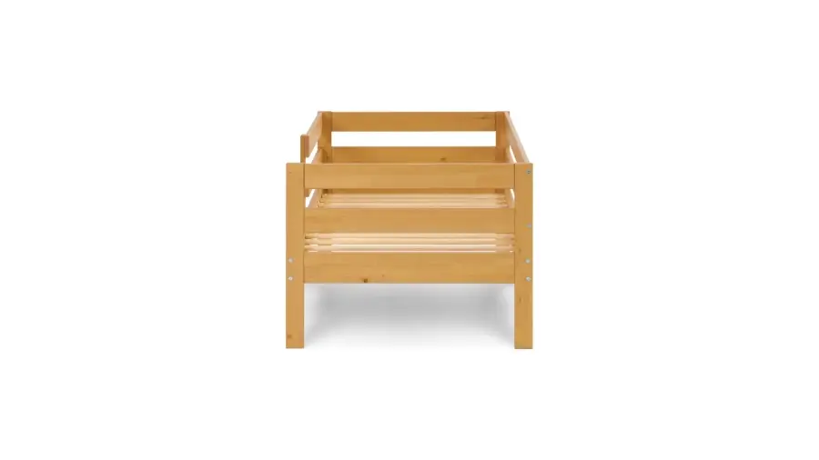 - Изготовлен из массива сосны. Дерево пропитано морилкой и покрыто прозрачным лаком на водной основе.