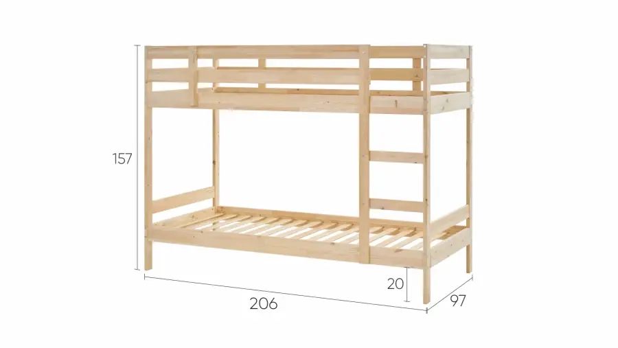 Товар производится на заводе ИКЕА в РФ, а вся фурнитура приезжает из оригинальной ИКЕА. Двухъярусная кровать ОШ 90x200 - Изготовлен из массива сосны. - Максимальная нагрузка на одно спальное место - 80 кг Габариты изделия: Ширина: 2060 мм Высота: 1565 мм Глубина: 971 мм Вес: 48 кг