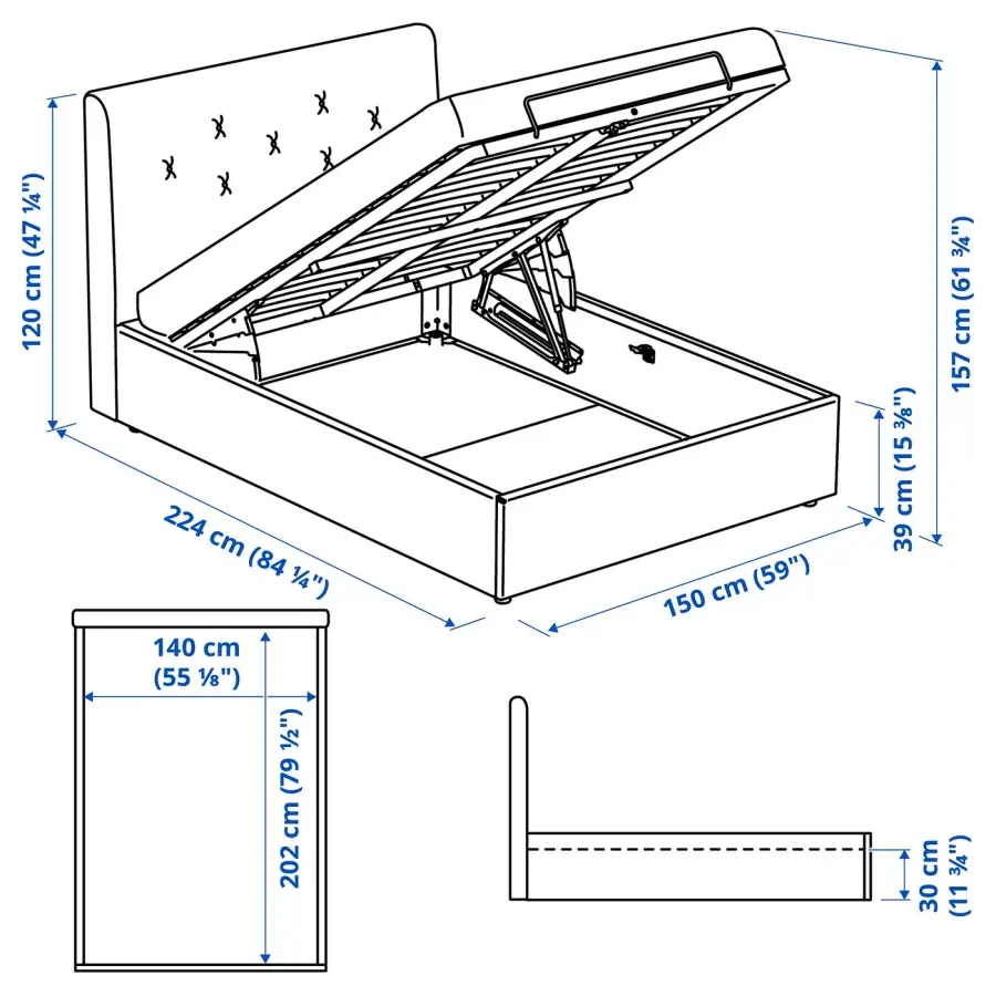 ИКЕА IKEA Наклонное изголовье и мягкая обивка делают кровать ИДАНЭС исключительно удобной. Классические пуговицы неподвластны времени, а пространство под кроватью обеспечивает достаточно места для повседневного хранения вещей. Оригинальная икея/ikea