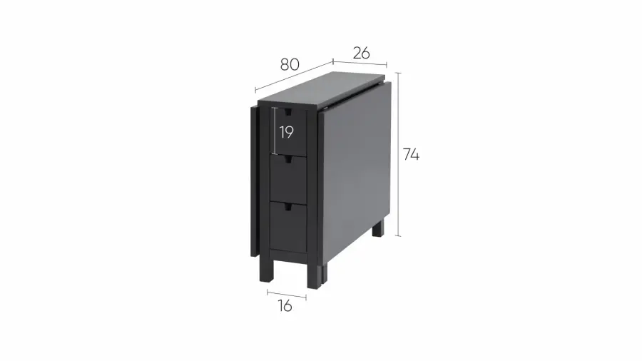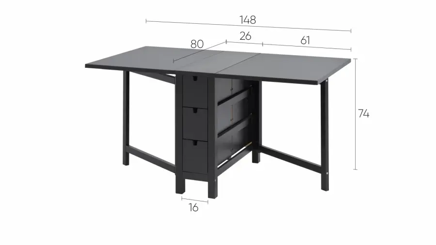 Практичное решение для небольшого помещения — не занимает много места в собранном виде и за секунды превращается в крупную столешницу.
