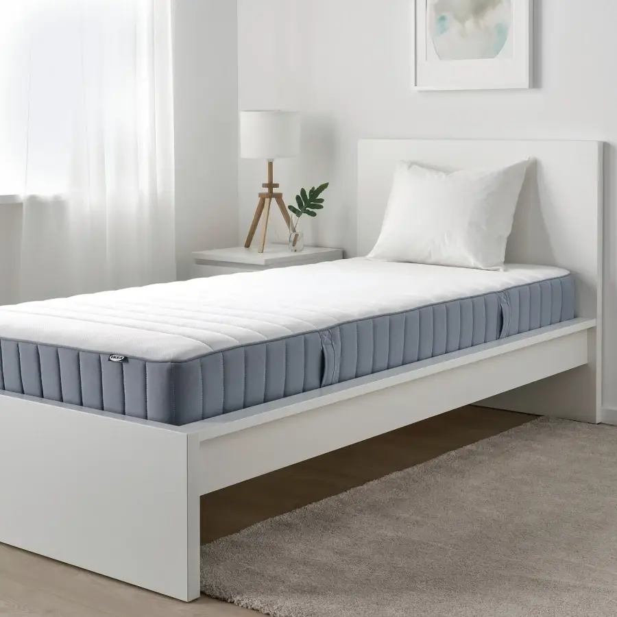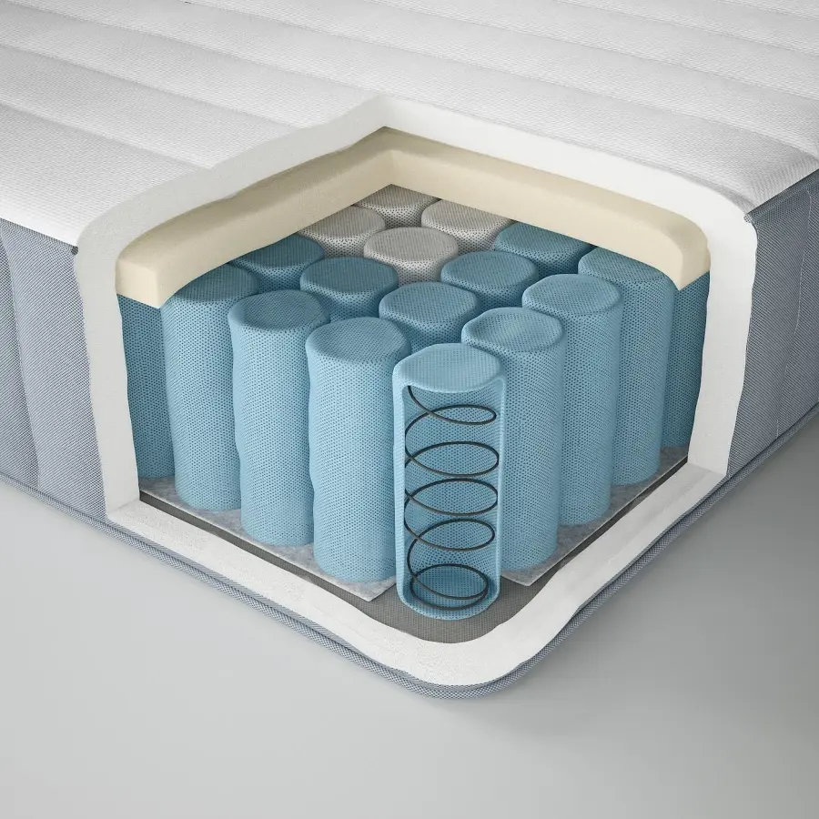 ИКЕА IKEA Карманные пружины, которые двигаются независимо друг от друга, и комфортные зоны в матрасе обеспечивают как твердую, так и мягкую поддержку именно там, где вам это нужно. 5 комфортных зон в матрасе обеспечивают очень точную поддержку и снимают давление на ваши плечи и бедра. Индивидуально упакованные карманные пружины изолируют движения, поэтому вы не будете мешать своему партнеру, если у вас есть привычка много двигаться во время сна. касайтесь и двигайтесь вместе с вами во время сна. Матрас упакован в рулон, поэтому его легко нести домой, а его практичные ручки по бокам помогают вам при перемещении матраса. Выберите подушку, которая вам нравится, чтобы сочетать ее с матрасом, чтобы по-настоящему улучшить свой сон. Пружины проходят от края до края, чтобы избежать зазора, если вы хотите разместить два матраса рядом друг с другом. Кроме того, матрасы легко соединяются друг с другом, когда их кладут рядом друг с другом. Чехол матраса прочно удерживается на матрасе. Его можно использовать только с одной стороны — матрас не нужно переворачивать. Вы можете удобно сидеть на краю своей кровати, так как усиленный край помогает сохранить матрас твердым и ровным. Чтобы сохранить матрас свежим, используйте средство для чистки текстиля, подходящее для обивки, и периодически пылесосьте его. Вы можете прочитать об условиях в гарантийной брошюре. Оригинальная икея/ikea