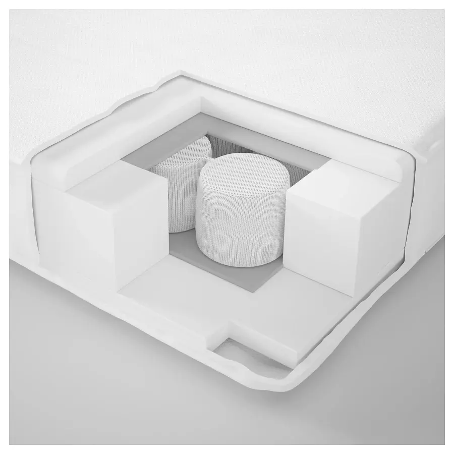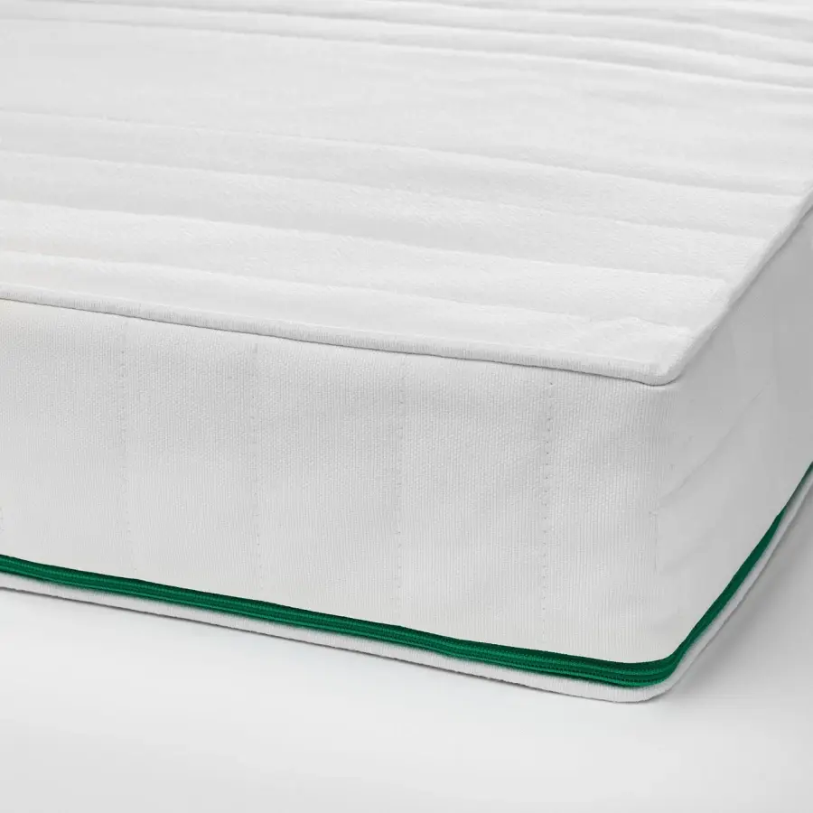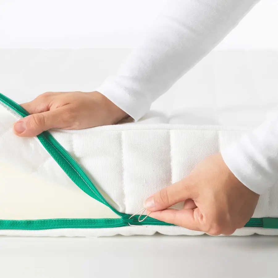 ИКЕА IKEA Чехол легко снимается и его можно стирать в стиральной машине при температуре 60°C. Индивидуально упакованные карманные пружины, заключенные в щедрый слой разгрузочной пены, точно повторяют тело вашего ребенка и обеспечивают поддержку, необходимую для хорошего и безопасного сна. На удлиняющих частях есть застежки, которые удерживают их на месте, когда вы заправляете кровать. Вы можете хранить выдвижные части матраса в прилагаемой сумке для хранения. Это защищает их от пыли и грязи, и вы знаете, что они свежие, когда они вам нужны. Защитная пенопластовая коробка и войлочная подкладка для дополнительного комфорта и долговечности. Прочный матрас, который можно использовать в течение длительного периода времени. Один матрас ‒ три длины. С помощью двух выдвижных частей матрас может расти вместе с ребенком от 130 до 165 или 200 см. Оригинальная икея/ikea