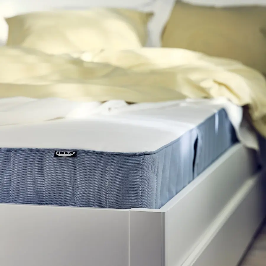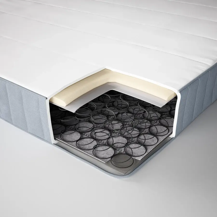 ИКЕА IKEA Простой пружинный матрас высотой 18 см. Он средней жесткости, оснащен пружинами Bonnell, а слой пены сверху и вата в стеганом чехле обеспечивают дополнительную амортизацию. Оригинальная икея/ikea