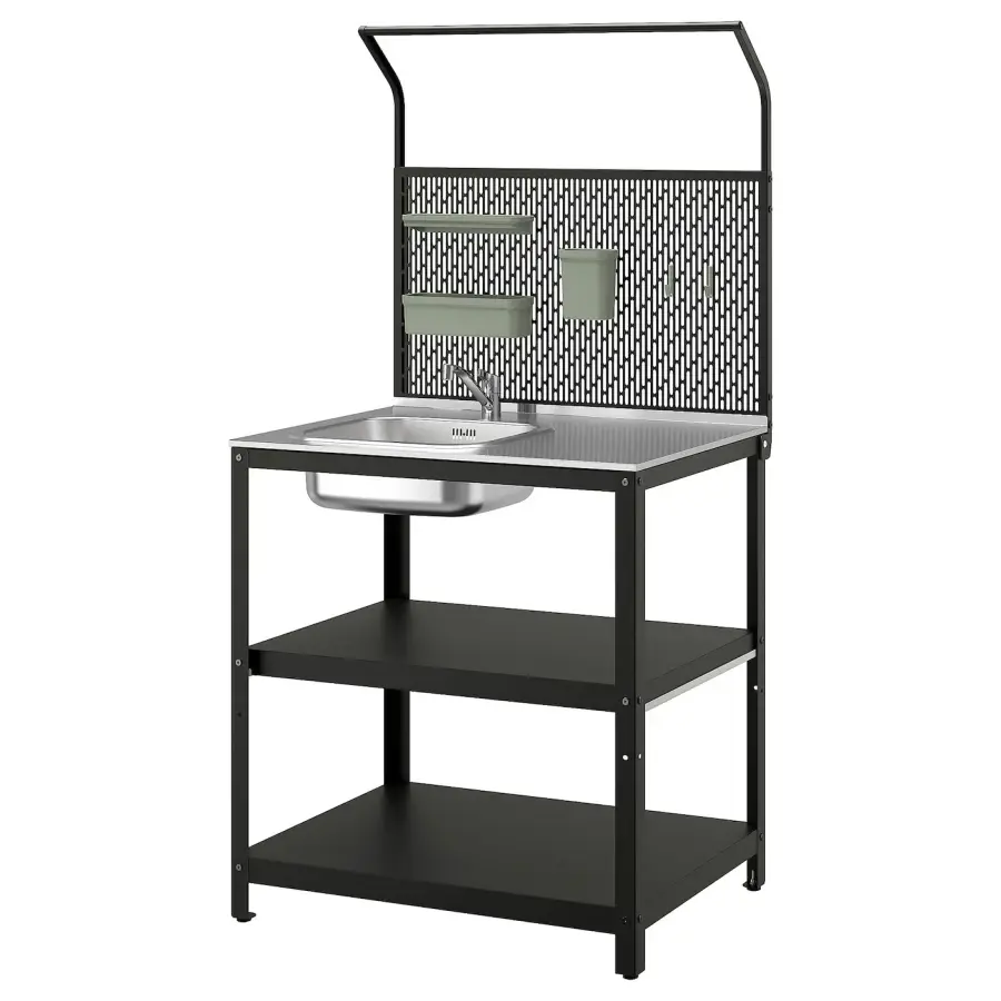 ИКЕА IKEA Уличная мойка с полками для хранения и практичной столешницей с отделением, куда можно спрятать грязную посуду, когда придет время готовить ее на гриле и подавать. Так же комфортно, как на кухне под крышей! Оригинальная икея/ikea