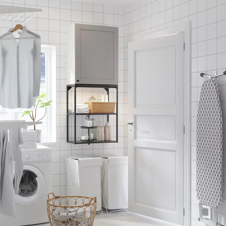 ИКЕА IKEA Серия ENHET позволяет легко начать все заново на кухне, в ванной или прачечной. Эта комбинация представляет собой идеальное сочетание открытого и закрытого хранения, предлагая достаточно места для мусорных баков или стиральной машины. Оригинальная икея/ikea