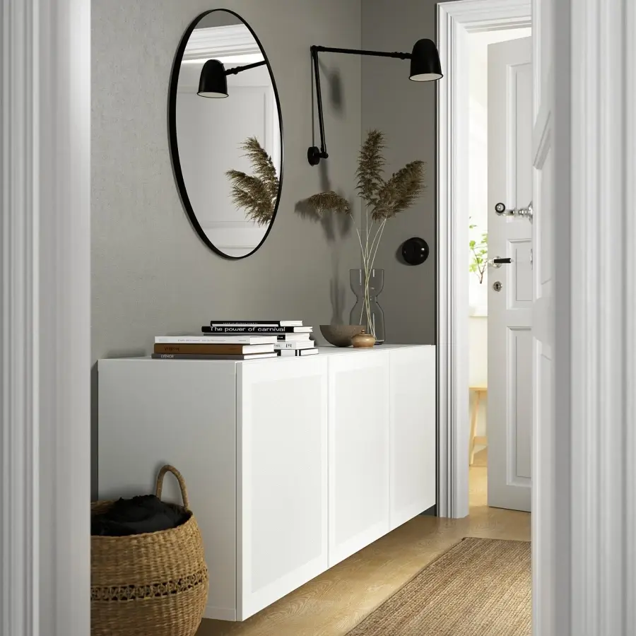 ИКЕА IKEA Вы можете разместить электронное оборудование за дверцами из металлической сетки, так как они пропускают сигналы с вашего пульта дистанционного управления. Настенное решение создает чистый, современный вид и облегчает уборку пола под ним. Регулируемые полки позволяют настроить пространство для хранения по мере необходимости. Регулируемые петли позволяют регулировать дверцу по горизонтали и вертикали. Оригинальная икея/ikea