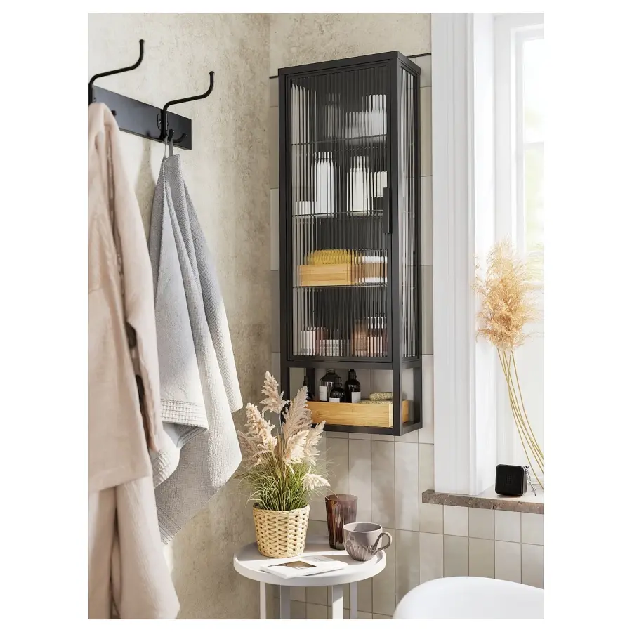 ИКЕА IKEA Рифленое стекло с трех сторон пропускает свет, не позволяя любопытным глазам заглядывать внутрь шкафа. Открытая полка идеально подходит для вещей, которые вы часто используете или хотите выставить напоказ, а за стеклянной дверцей вы можете спрятать самые личные вещи. Три стеклянные полки легко мыть и легко перемещать, освобождая максимум места для ваших вещей. Дверца имеет удобную ручку и удерживается на месте с помощью магнитов. Вы можете установить дверь с петлями на левую или правую сторону – выбирайте, что вам больше подходит. Оригинальная икея/ikea