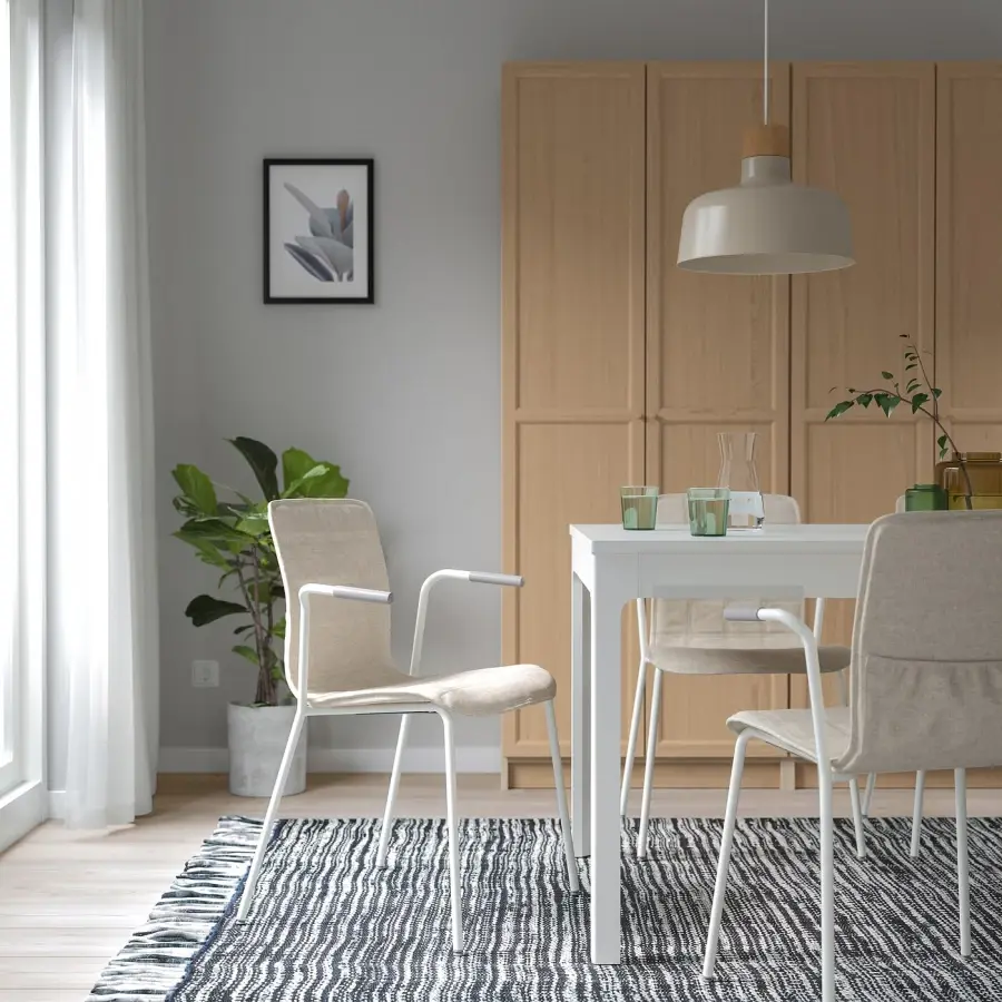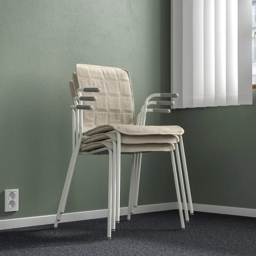 ИКЕА IKEA Гарантия 10 лет. Прочтите об условиях в гарантийной брошюре. Подходит для использования в бизнесе. Чехол на кресло легко снять и постирать, благодаря чему конференц-зал будет выглядеть чистым и свежим. Экономьте место, когда стулья не используются. Сложите до 5 стульев с тканевым чехлом или до 7 стульев без чехла. Легкий и простой в перемещении или перестановке в соответствии с потребностями ваших встреч. Резиновые подлокотники удерживают кресло на месте, когда вы подвешиваете его над столешницей, что упрощает уборку полов. Более темный цвет скрывает загрязнения, возникающие в результате частого использования. Укороченные подлокотники позволяют сидеть ближе к столу, обеспечивая лучшую осанку. Кроме того, вам не придется выдвигать его слишком далеко, вставая со стула. Резиновые ножки стульев защищают пол и снижают шум от перемещения стульев. Подлокотники обеспечивают поддержку верхней части предплечий и снижают нагрузку на спину и плечи во время длительных совещаний. Поясничная поддержка помогает поддерживать правильную осанку во время сидения, что снижает нагрузку на мышцы нижней части спины. Мягкая пластина под сиденьем стула предотвращает появление царапин на поверхности сиденья, когда стулья сложены друг на друга. Этот чехол изготовлен из окрашенной в массе ткани GUNNARED из полиэстера. Это прочная ткань, напоминающая на ощупь шерсть, теплый вид и двухцветный меланжевый эффект. Чехлы мягкие и удобные, на 90 % изготовлены из переработанного полиэстера. Доступен в нескольких цветах, что позволяет легко сочетать их с другой мебелью в комнате. Чехлы на стулья имеют простой и элегантный вид, поэтому их легко разместить в любом конференц-зале. Держите под рукой несколько дополнительных чехлов, чтобы при необходимости можно было быстро и легко обновить их. Создайте офис в цветовой гамме. Используйте чехлы на стулья разных цветов для разных зон встреч и рабочих мест. Стул для конференций ЛЭКТАРЕ идеально сочетается с стулом для конференций ЛОНГФЬЕЛЛ и офисным стулом ХАТТЕФЬЕЛЛЬ. Вы также можете использовать стул без чехла. Естественная выразительность светлого березового шпона легко сочетается с другой мебелью и цветами. Оригинальная икея/ikea