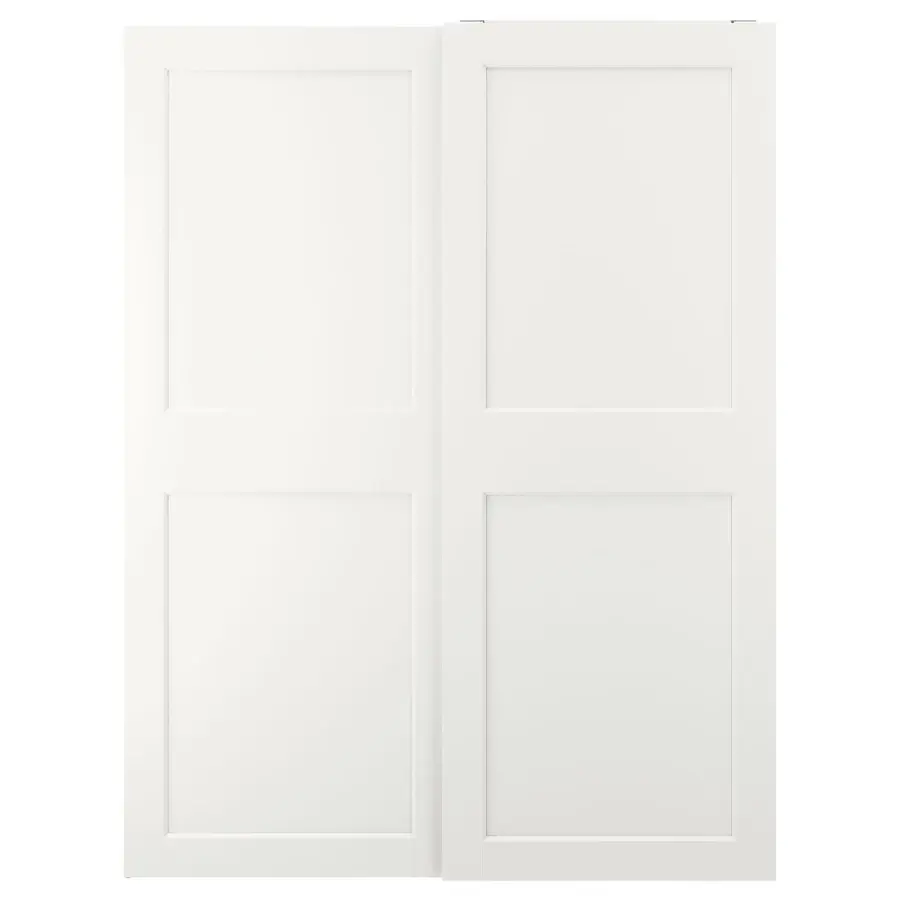 ИКЕА IKEA 10 лет гарантии. Прочтите об условиях в гарантийной брошюре. Механизм плавного закрывания встроен в направляющие и улавливает двери, когда они движутся по направляющим, так что они открываются и закрываются медленно, тихо и мягко. Двухпанельная дверь имеет коренастые широкие рамы со скошенной кромкой внутри. Мы свели детали к минимуму и сосредоточились на четких линиях. GRIMO покрыт белой пленкой как спереди, так и сзади, идеально сочетаясь с белым каркасом шкафа ПАКС. Раздвижные двери оставляют больше места для мебели, потому что они не занимают места для открывания. Раздвижные двери не требуют ручек или ручек. Это создает вневременное выражение, которое легко комбинировать с разными стилями. Оригинальная икея/ikea