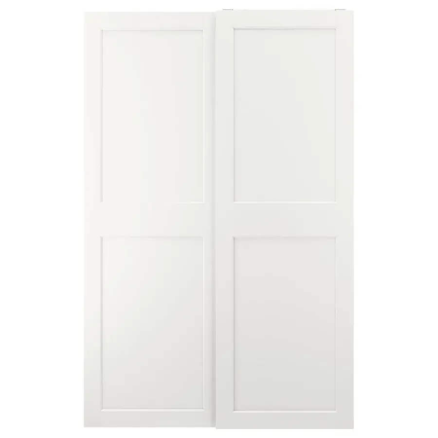 ИКЕА IKEA 10 лет гарантии. Прочтите об условиях в гарантийной брошюре. Механизм плавного закрывания встроен в направляющие и улавливает двери, когда они движутся по направляющим, так что они открываются и закрываются медленно, тихо и мягко. Двухпанельная дверь имеет коренастые широкие рамы со скошенной кромкой внутри. Мы свели детали к минимуму и сосредоточились на четких линиях. GRIMO покрыт белой пленкой как спереди, так и сзади, идеально сочетаясь с белым каркасом шкафа ПАКС. Раздвижные двери оставляют больше места для мебели, потому что они не занимают места для открывания. Раздвижные двери не требуют ручек или ручек. Это создает вневременное выражение, которое легко комбинировать с разными стилями. Оригинальная икея/ikea
