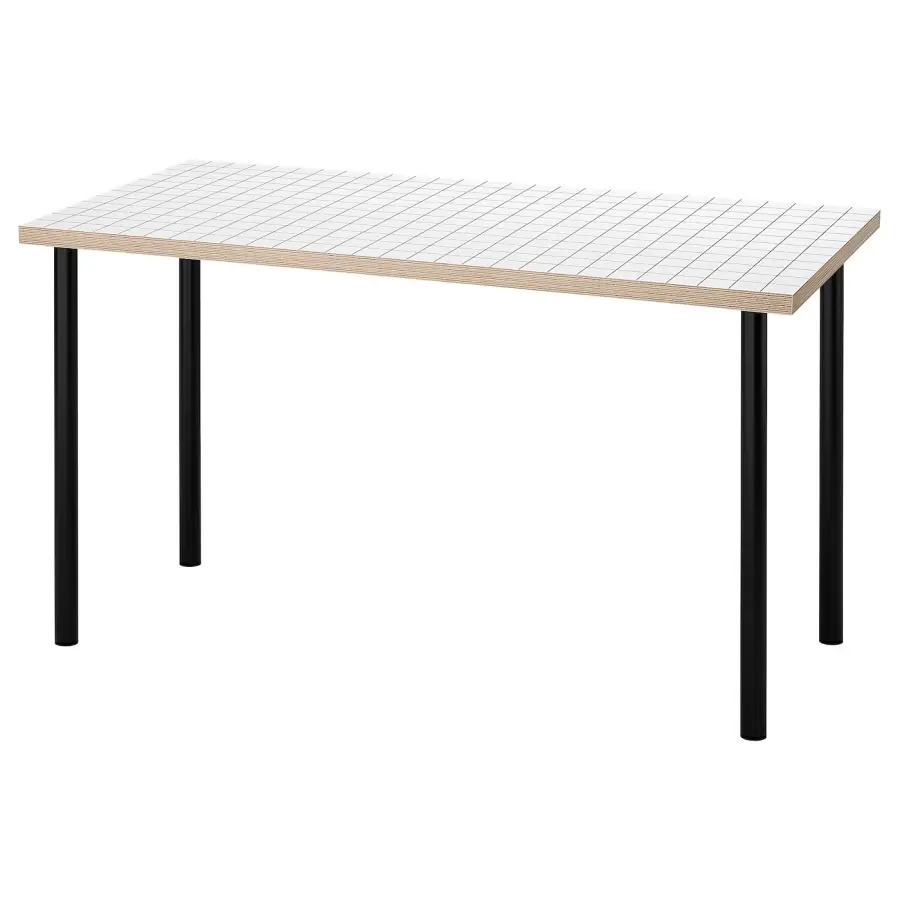 ИКЕА IKEA Регулируемые ножки делают стол устойчивым даже на неровном полу. Каркас — это прочный и легкий материал с каркасом из дерева, ДСП или ДВП и наполнением из переработанной бумаги. Для него требуется меньше сырья, и его легко транспортировать, что снижает воздействие на окружающую среду. В столешнице есть предварительно просверленные отверстия, облегчающие крепление к основанию. Край с фанерным рисунком усиливает ощущение качества. Оригинальная икея/ikea