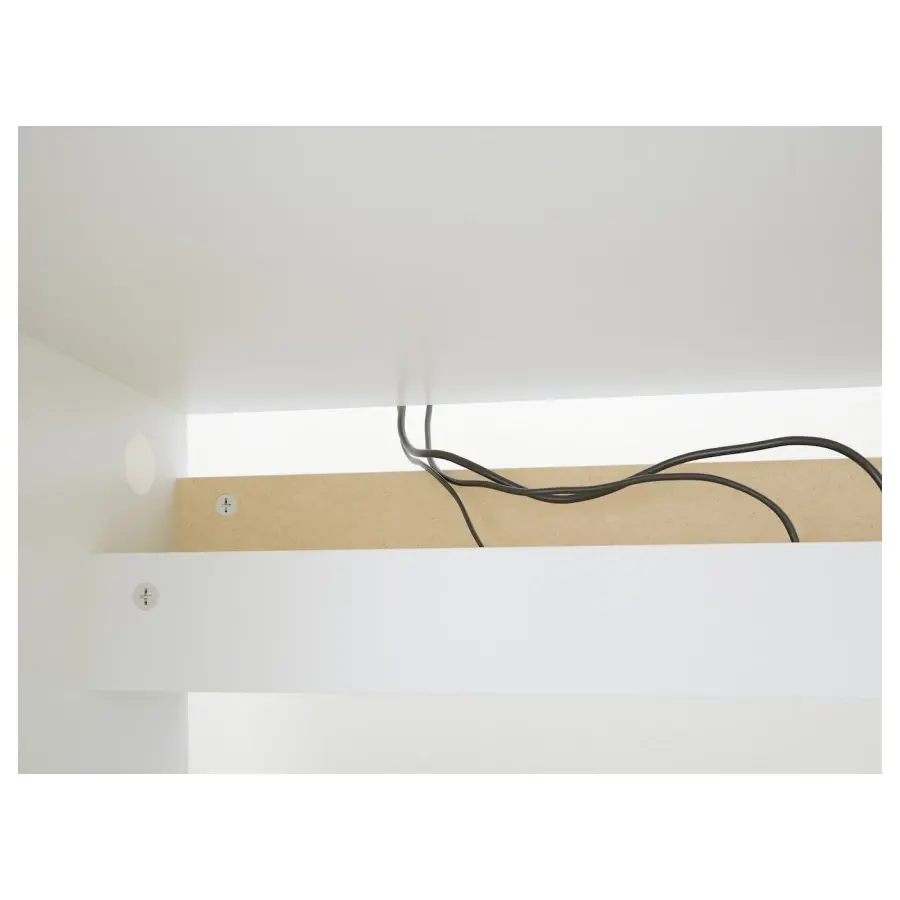 ИКЕА IKEA Вы можете собрать кабели и удлинители на полке под столешницей, чтобы они были спрятаны, но при этом всегда были под рукой. Можно разместить посреди комнаты, потому что задняя часть закончена. Вы можете установить блок хранения справа или слева, в зависимости от вашего пространства или предпочтений. Оригинальная икея/ikea