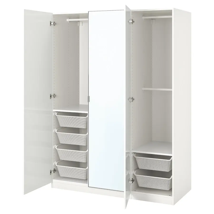 ИКЕА IKEA 10 лет гарантии. Прочтите об условиях в гарантийной брошюре. Вы можете легко адаптировать эту готовую комбинацию ПАКС/КОМПЛИМЕНТ в соответствии с вашими потребностями и вкусом с помощью инструмента планирования ПАКС. Регулируемые ножки позволяют компенсировать любые неровности пола. Петли со встроенными демпферами захватывают дверь и закрывают ее медленно, бесшумно и мягко. После выбора источника света специалист по планированию определит, какие аксессуары вам потребуются для завершения решения. Сетчатая корзина обеспечивает циркуляцию воздуха и идеально подходит для хранения сложенной одежды, носков или аксессуаров. Знаете ли вы, как легко перемещать внутренние органайзеры по вкусу или менять их позже? С небольшими изменениями вы можете изменить решение для хранения в соответствии с вашей одеждой, а не наоборот. Комната сразу же кажется больше, светлее и просторнее, выбрав зеркальные двери. Отличный способ преобразить узкую прихожую или крошечную спальню. Оригинальная икея/ikea