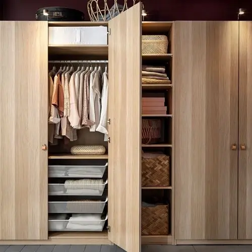 ИКЕА IKEA 10 лет гарантии. Прочтите об условиях в гарантийной брошюре. Вы можете легко адаптировать эту готовую комбинацию ПАКС/КОМПЛИМЕНТ в соответствии с вашими потребностями и вкусом с помощью инструмента планирования ПАКС. Регулируемые ножки позволяют компенсировать любые неровности пола. Петли со встроенными демпферами захватывают дверь и закрывают ее медленно, бесшумно и мягко. После выбора источника света специалист по планированию определит, какие аксессуары вам потребуются для завершения решения. Сетчатая корзина обеспечивает циркуляцию воздуха и идеально подходит для хранения сложенной одежды, носков или аксессуаров. Знаете ли вы, как легко передвигать внутренние органайзеры по вкусу или менять их позже? С небольшими изменениями вы можете изменить решение для хранения в соответствии с вашей одеждой, а не наоборот. Оригинальная икея/ikea