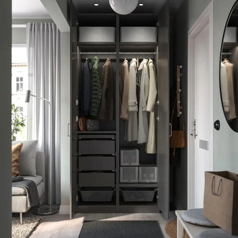 ИКЕА IKEA 10 лет гарантии. Ознакомьтесь с условиями в гарантийной брошюре. Вы можете легко адаптировать эту готовую комбинацию ПАКС/КОМПЛИМЕНТ в соответствии с вашими потребностями и вкусом с помощью инструмента планирования ПАКС. Регулируемые ножки позволяют компенсировать любые неровности пола. Петли со встроенными демпферами улавливают дверь и закрывают ее медленно, бесшумно и мягко. С PAX Planner вы можете легко дополнить свою комбинацию встроенным освещением. После выбора источника света планировщик подберет аксессуары, необходимые для завершения решения. Здесь есть место как для длинной, так и для короткой одежды. Есть только рубашки одинаковой длины? При желании легко добавить ящики или корзины. Чувствуете себя еще более организованным? Дополните ящики ящиками КОМПЛИМЕНТ, их можно комбинировать, чтобы они идеально подходили друг другу, чтобы вы могли использовать ящик полностью. Оригинальная икея/ikea