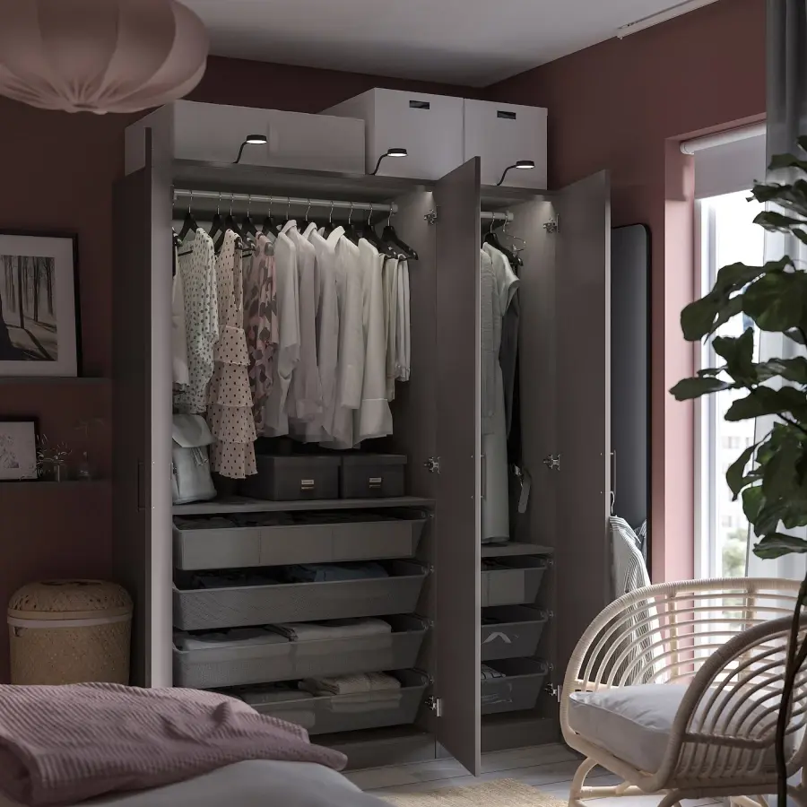 ИКЕА IKEA 10 лет гарантии. Прочтите об условиях в гарантийной брошюре. Вы можете легко адаптировать эту готовую комбинацию ПАКС/КОМПЛИМЕНТ в соответствии с вашими потребностями и вкусом с помощью инструмента планирования ПАКС. Регулируемые ножки позволяют компенсировать любые неровности пола. Петли со встроенными демпферами захватывают дверь и закрывают ее медленно, бесшумно и мягко. После выбора источника света специалист по планированию определит, какие аксессуары вам потребуются для завершения решения. Сетчатая корзина обеспечивает циркуляцию воздуха и идеально подходит для хранения сложенной одежды, носков или аксессуаров. Знаете ли вы, как легко перемещать внутренние органайзеры по вкусу или менять их позже? С небольшими изменениями вы можете изменить решение для хранения в соответствии с вашей одеждой, а не наоборот. Оригинальная икея/ikea