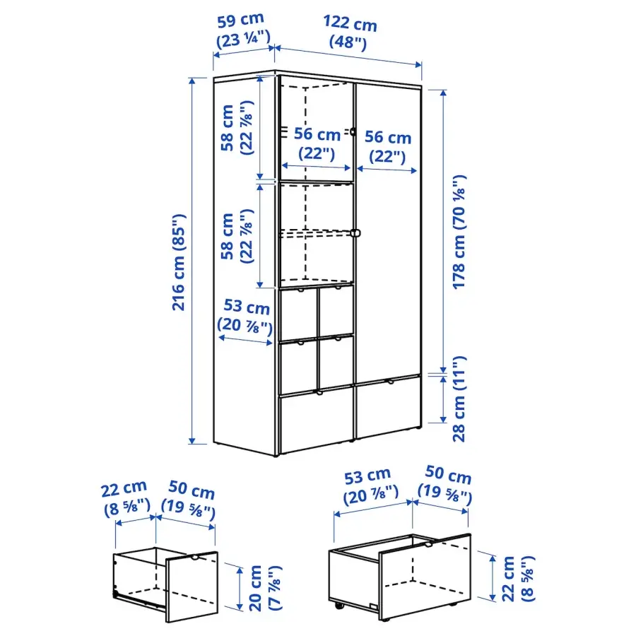 ИКЕА IKEA Нижние ящики оснащены колесиками, поэтому их легко перемещать. Ящики с плавным ходом и стопором для выдвижения. Регулируемые ножки позволяют компенсировать любые неровности пола. Простота сборки. Оригинальная икея/ikea