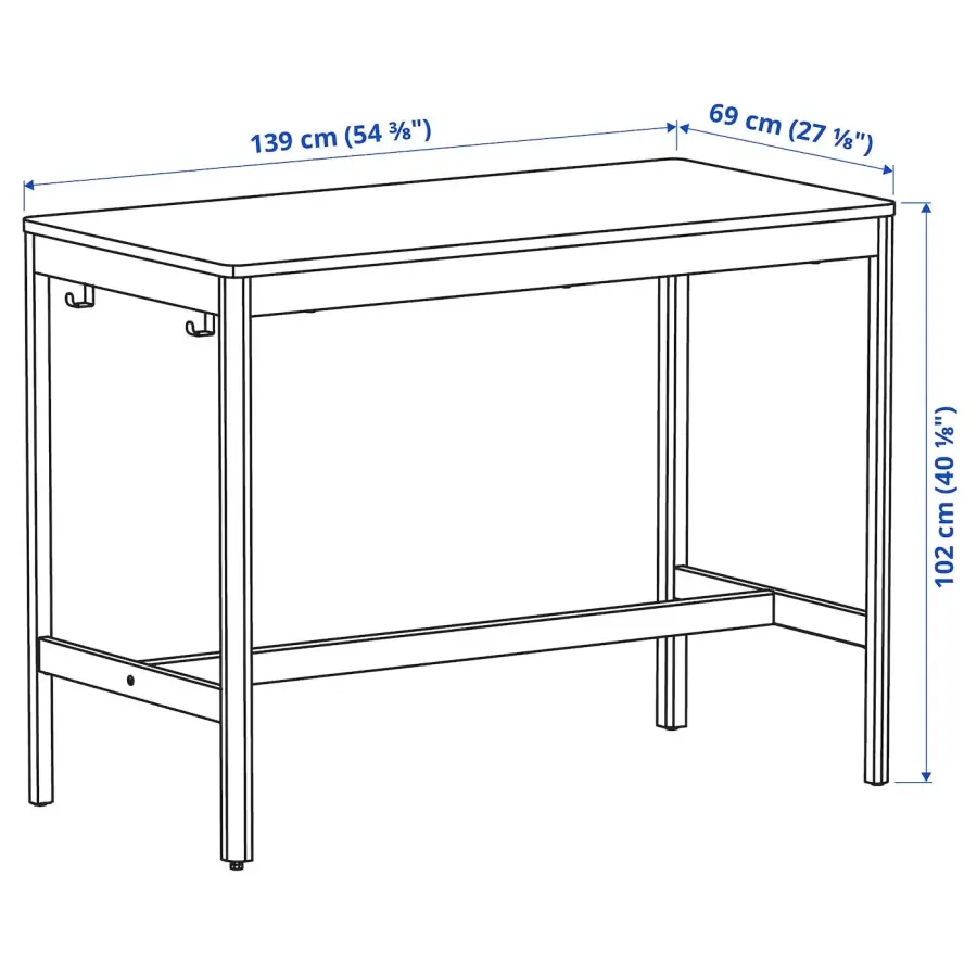 ИКЕА IKEA Устойчивое основание лаконичного дизайна, которое можно комбинировать со столешницей IDÅSEN. Повесьте сумку или куртку на крючки с короткой стороны стола. Меняйте положение сидя, поставив ноги на центральную балку. Оригинальная икея/ikea