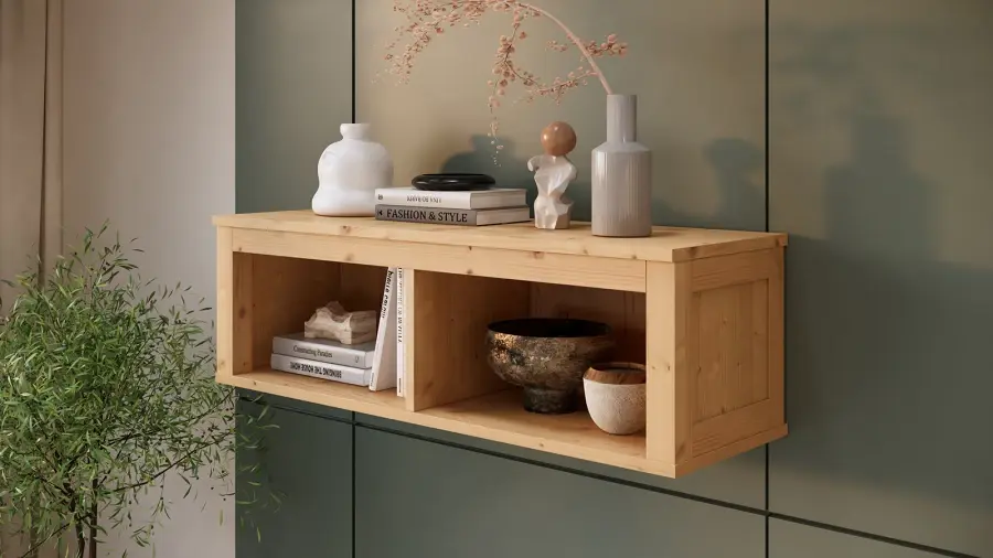 - Изготовлен из массива сосны. Дерево пропитано морилкой и покрыто прозрачным лаком на водной основе.