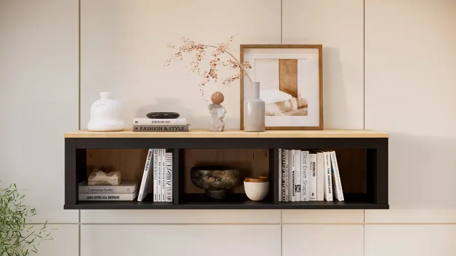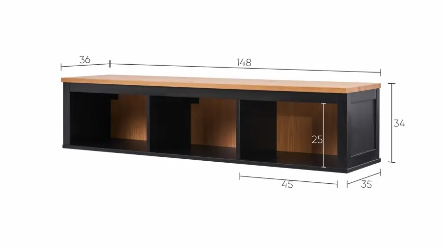 Полка навесная - аналог IKEA HEMNES / ХЕМНЭС/ ХЕМНЕС / КЫМОР / ИКЕА 148х34х37 см, черный/светло-коричневый