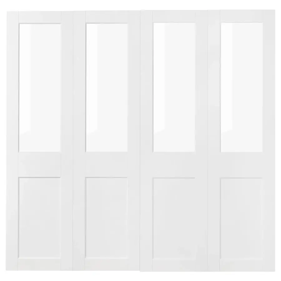 ИКЕА IKEA Раздвижные двери GRIMO со стеклянной панелью сверху идеально подходят для тех, кто любит продемонстрировать свои свежевыглаженные рубашки или яркие платья – они также сочетаются с белыми каркасами гардероба из серии ПАКС. Оригинальная икея/ikea