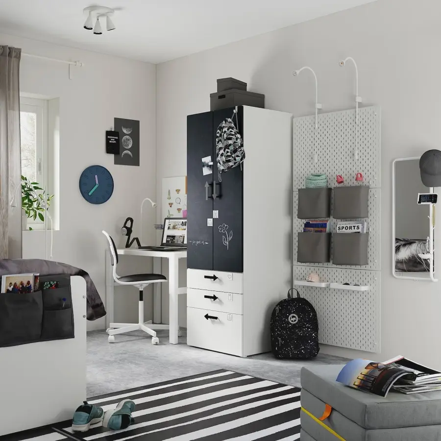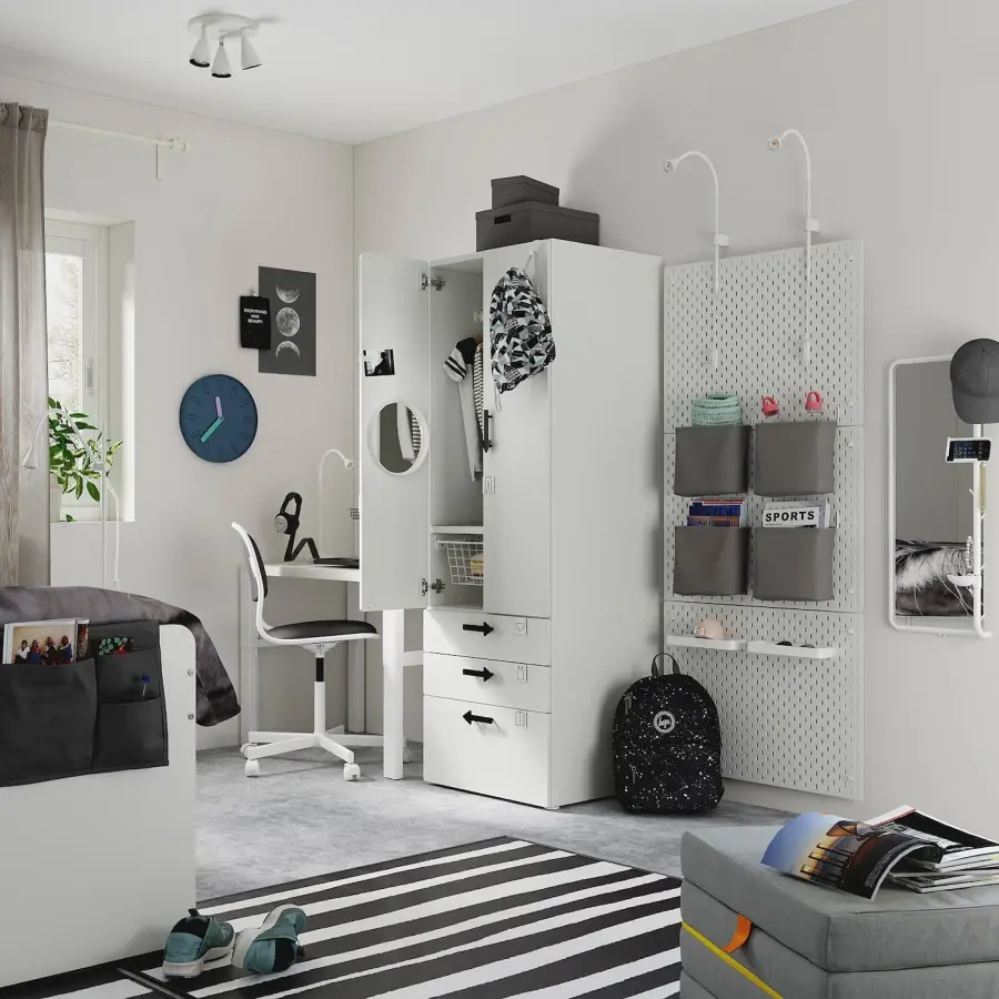 ИКЕА IKEA Ваш ребенок может пользоваться этим шкафом долгие годы, так как он достаточно глубокий, чтобы вместить вешалки для взрослых, и имеет внутреннюю часть, которую вы можете передвигать по мере роста ребенка. Дверцы имеют плавно закрывающиеся петли, благодаря которым они закрываются мягко и бесшумно даже после ожесточенной ссоры. Оригинальная икея/ikea
