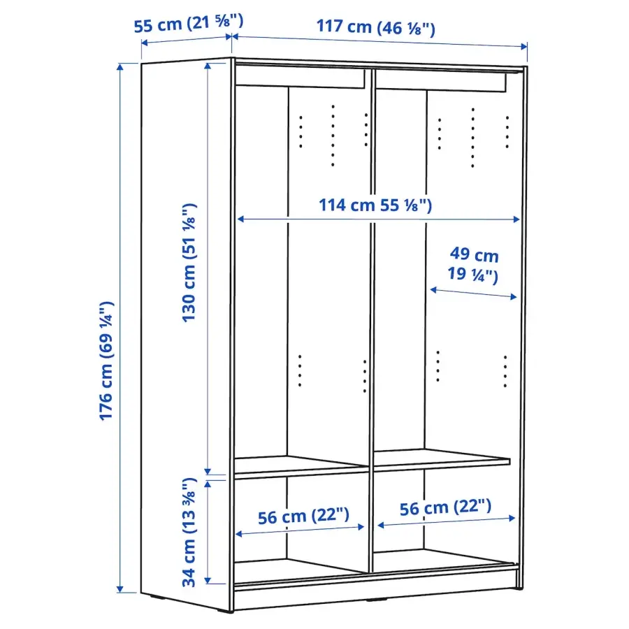 ИКЕА IKEA Просторный, но удобный шкаф с вешалкой для одежды и нижней полкой. Раздвижные двери оставляют больше места для мебели, потому что они не занимают места для открывания. Оригинальная икея/ikea