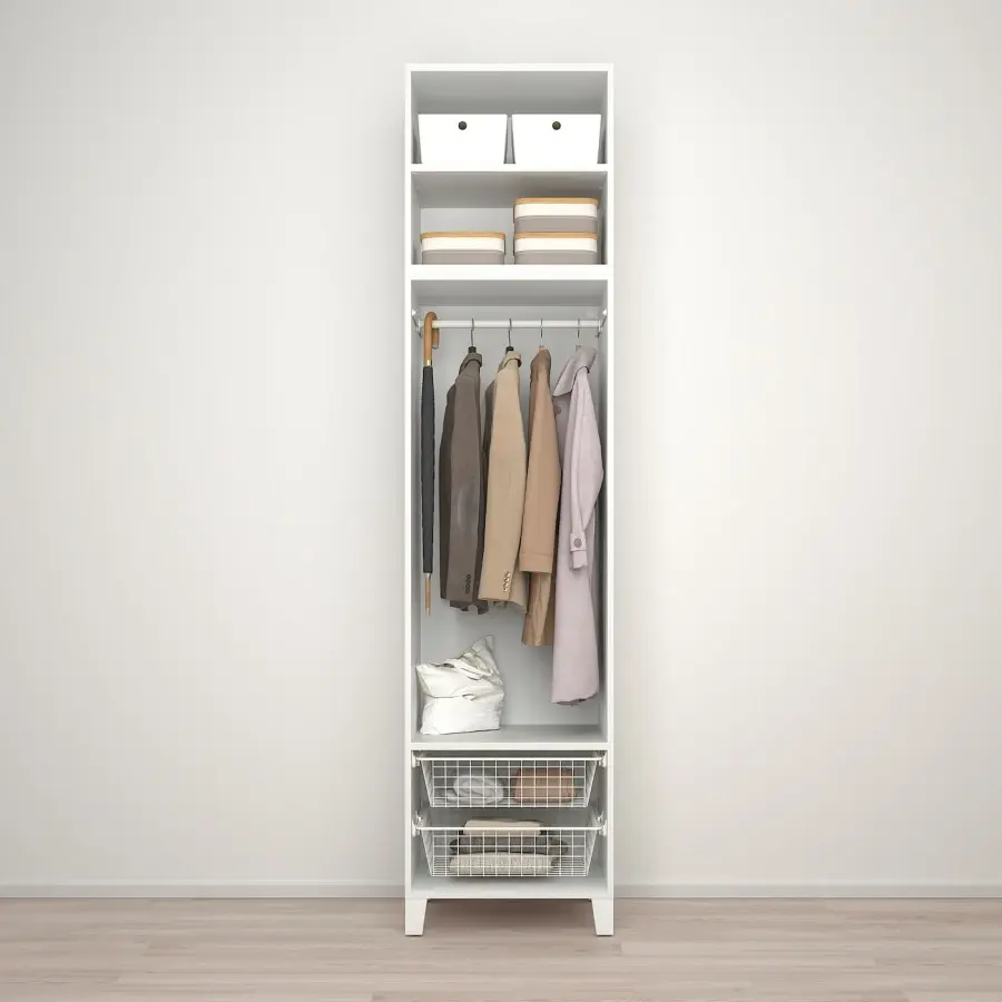 Внутри вы можете организовать интерьер с помощью серии ХЬЭЛПА, а для экстерьера есть умные решения серии ЛЭТТХЕТ. Регулируемые ножки позволяют компенсировать неровности пола. Вы можете легко соединить несколько рамок PLATSA друг с другом с помощью прилагаемых зажимов. Их легко устанавливать и снимать без использования инструментов, и вы избегаете видимых отверстий для винтов снаружи. Если выбрать зеркальные двери, комната сразу станет больше, светлее и просторнее. Отличный способ преобразить узкую прихожую или крохотную спальню. Вы можете легко трансформировать свое решение для хранения в соответствии с различными потребностями или создать другой внешний вид. Просто добавьте, уберите или переместите детали. Вы экономите пространство с зеркальной дверцей, так как отдельное зеркало вам не понадобится. Дверцы можно повесить с открыванием вправо или влево. С помощью инструмента планирования дома PLATSA вы можете легко создать решение, адаптированное к вам, вашему дому и вашим потребностям в хранении.
