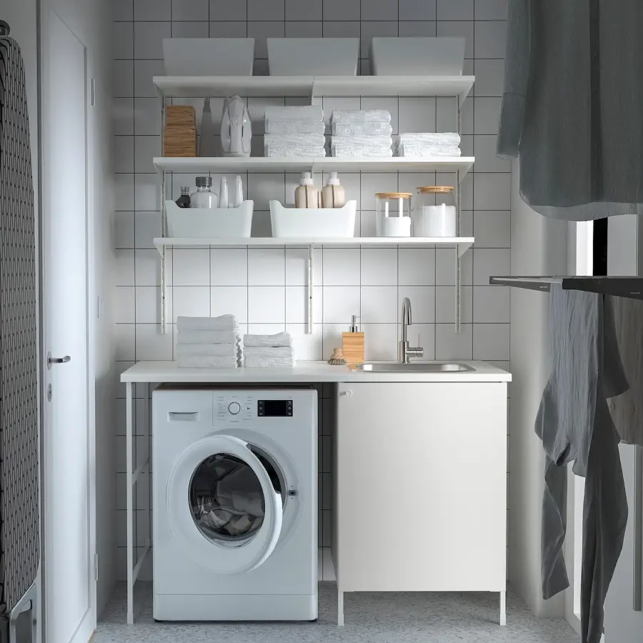 ИКЕА IKEA Такое сочетание позволяет добиться высокой производительности на небольшом пространстве. В нем есть отдельное место для техники, столешница и шкаф для более крупных вещей. Раковина — это ключ, который делает эту установку по-настоящему функциональной. Оригинальная икея/ikea