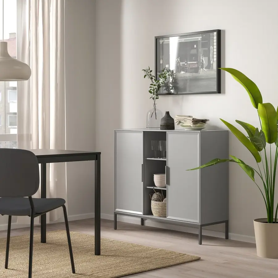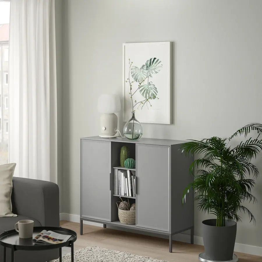 ИКЕА IKEA Вам интересно узнать, как по-новому обставить свою гостиную? Высокий шкаф TULLSTORP изготовлен из металла, имеет скошенные дверцы и стильные тонкие линии. Создайте захватывающий контраст с помощью коробок из натурального волокна. Оригинальная икея/ikea