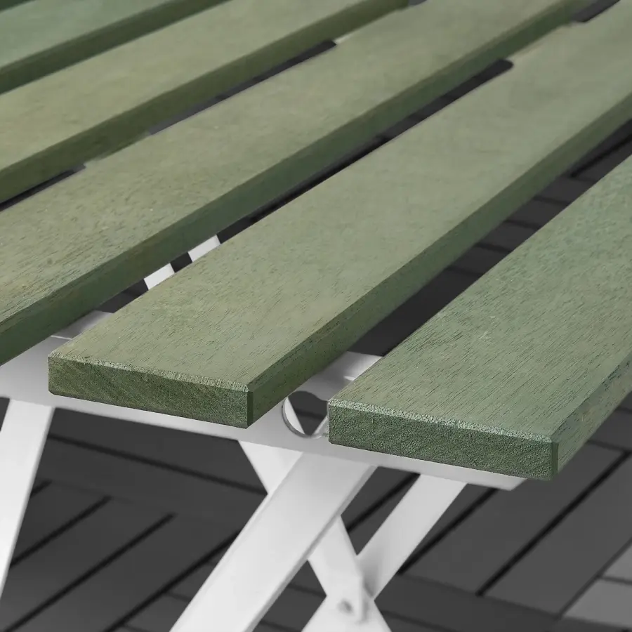 Стул и стол занимают мало места для хранения, поскольку складываются. Для дополнительной долговечности и для того, чтобы вы могли насладиться естественностью древесины, мебель предварительно обработана слоем полупрозрачной морилки.