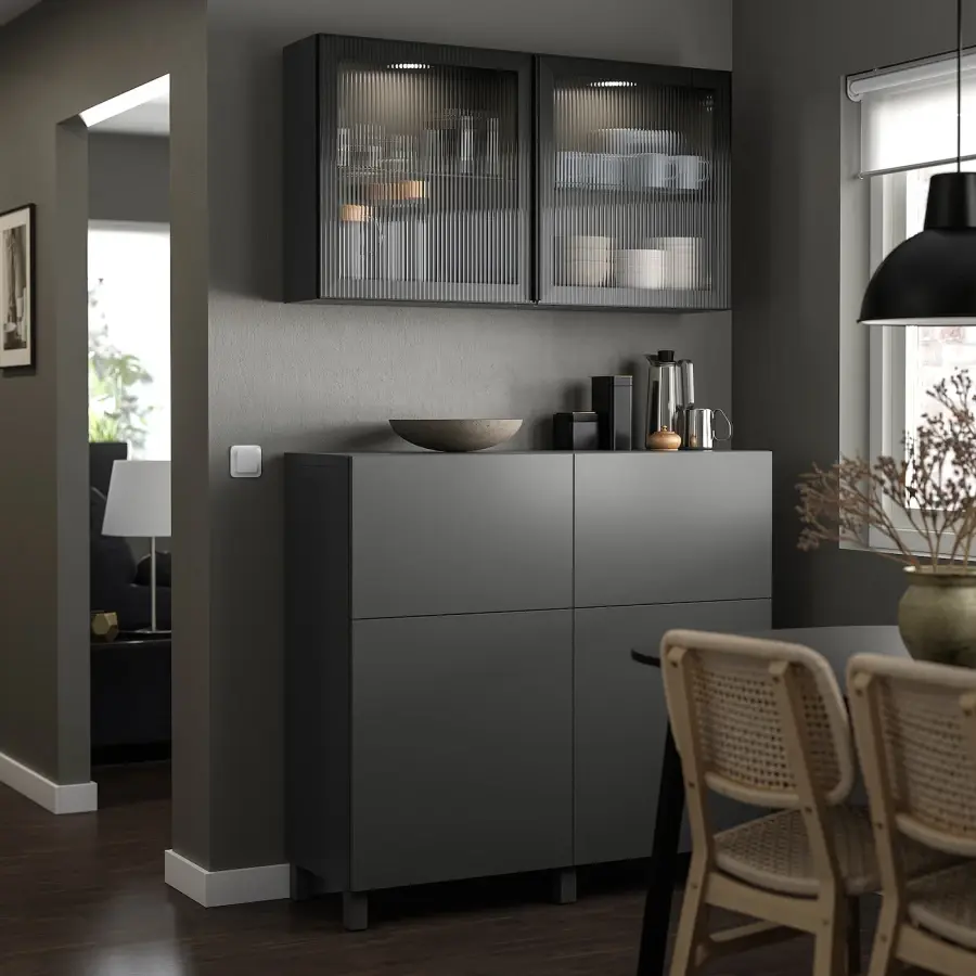 ИКЕА IKEA Фасад ФЭЛЛСВИК из антрацитово-серого рифленого стекла создает разнообразные световые эффекты и придает БЕСТО интересный вид. Для усиления элегантности можно добавить встроенное освещение. Оригинальная икея/ikea