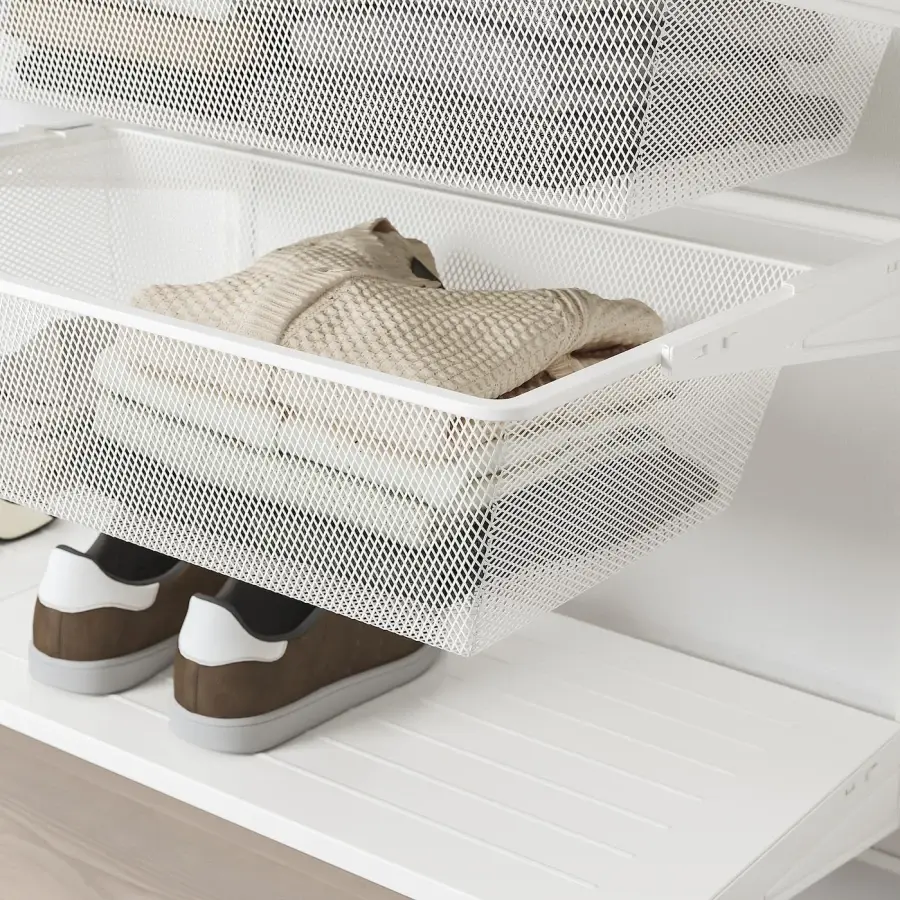 ИКЕА IKEA Вы всегда можете адаптировать или дополнить это решение открытого хранилища по мере необходимости. Может быть, комбинация, которую мы предложили, идеальна для вас, или вы можете легко создать свою собственную. Вы можете выдвинуть сетчатую корзину, чтобы было легче видеть и доставать свои вещи. Вы легко щелкаете внутреннюю часть кронштейна BOAXEL, никаких инструментов не требуется. С планировщиком BOAXEL вы можете легко создать решение, адаптированное для вас, вашего дома и ваших потребностей в хранении. Оригинальная икея/ikea