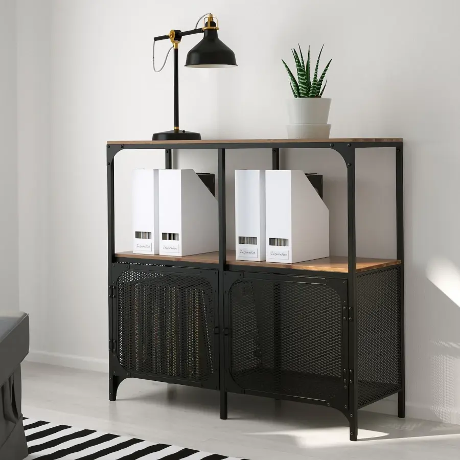 ИКЕА IKEA Эта деревенская полка из металла и цельного дерева имеет открытую спинку, поэтому на ней легко разместить шнуры и получить доступ к розеткам. Простой стеллаж может быть достаточным местом для хранения в ограниченном пространстве или основой для более крупного решения для хранения, если ваши потребности изменятся. Стеллаж устойчиво стоит даже на неровных полах, поскольку у него есть регулируемые ножки. Эта деревенская полка изготовлена из металла и массива дерева, что делает каждый предмет мебели уникальным. Оригинальная икея/ikea