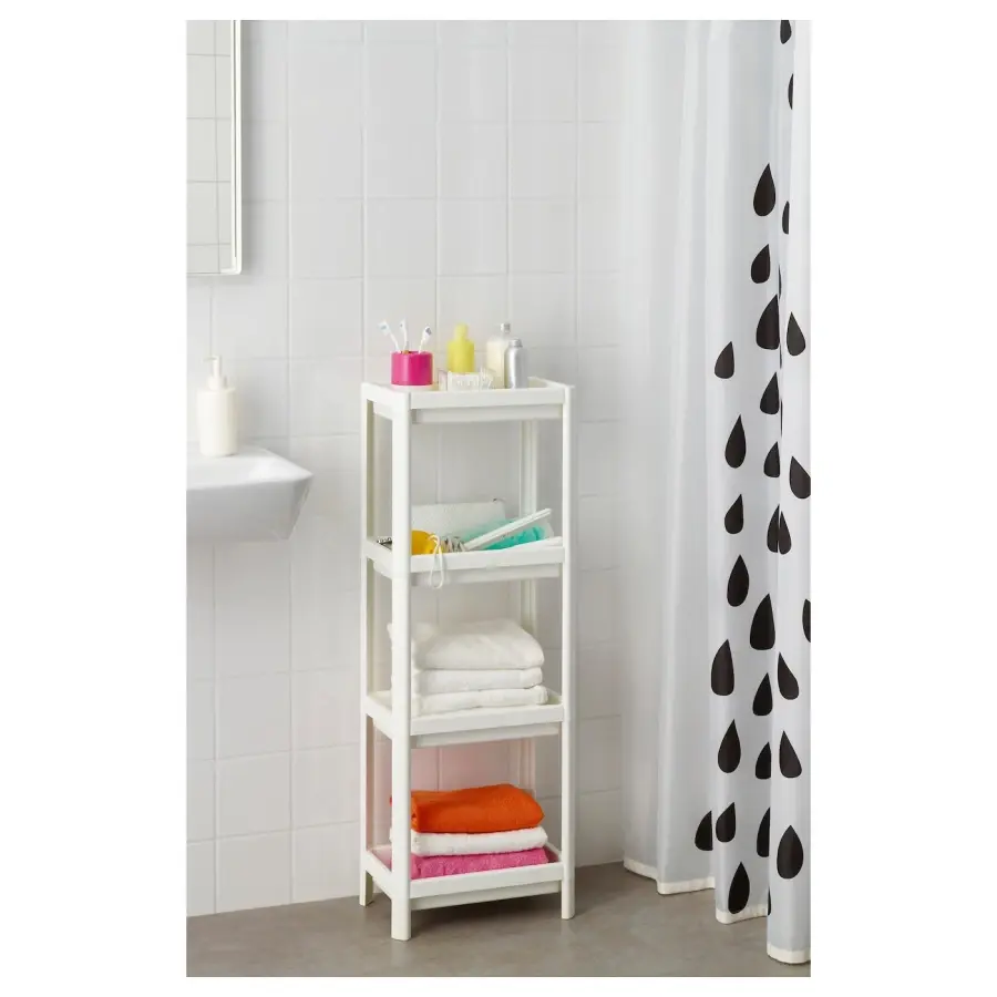 ИКЕА IKEA Соберите полку быстро и легко, соединив детали без каких-либо инструментов. Все остается на своих местах, от шампуня и кондиционера до губок, так как полка имеет высокие края со всех сторон. Идеально подходит для небольшой ванной комнаты. Оригинальная икея/ikea