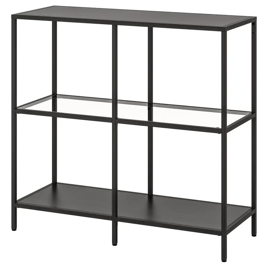 ИКЕА IKEA Закаленное стекло и металл — прочные материалы, которые создают ощущение открытого и воздушного пространства. Простого устройства может быть достаточно для хранения в ограниченном пространстве или в качестве основы для более крупного решения для хранения, если ваши потребности изменятся. Регулируемые ножки; устойчиво стоит даже на неровном полу. Вы можете выбрать понравившийся вид, потому что верхняя и нижняя панели имеют одну черно-коричневую и одну черную сторону. Оригинальная икея/ikea