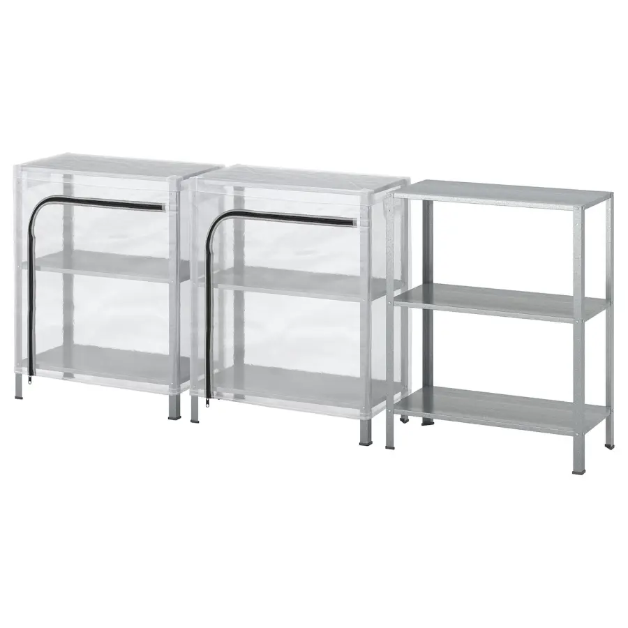Это хранилище идеально подходит для горшков и растений ⎼ и может легко трансформироваться в теплицу, если дополнить его крышкой HYLLIS. Может использоваться как внутри, так и снаружи помещения, одинаково уместен как на балконе, так и на кухне, в коридоре или ванной комнате. С чехлом HYLLIS вы защитите свои вещи от дождя и пыли (продается отдельно). Чехол легко надевается и снимается. В верхней части крышки имеется отверстие, позволяющее воздуху циркулировать. Если вам нужно более просторное решение для хранения, вы можете объединить несколько стеллажей из одной серии.