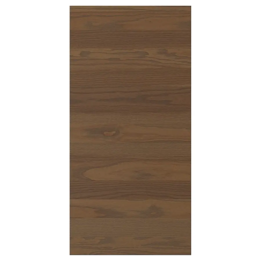 ИКЕА IKEA Кухонные фасады STENSTA из мореного ясеневого шпона темно-коричневого цвета с богатой текстурой сочетаются с широкими ручками из массива дерева, идущими вдоль всего фасада, подчеркивая красивую, линейную планировку всей композиции. Оригинальная икея/ikea