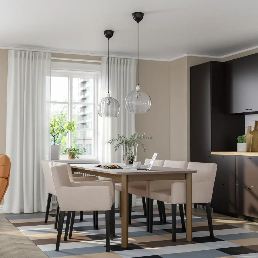 ИКЕА IKEA 6-местный обеденный гарнитур со столом из дерева и стали, который можно легко расширить на 4, 6 или 8 человек, и стульями современного дизайна с эффектом подушки и моющимися чехлами, делающими жизнь более комфортной и простой. Оригинальная икея/ikea