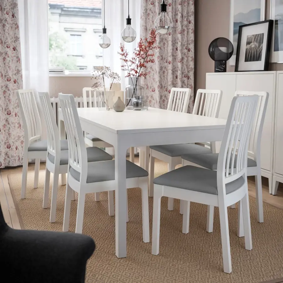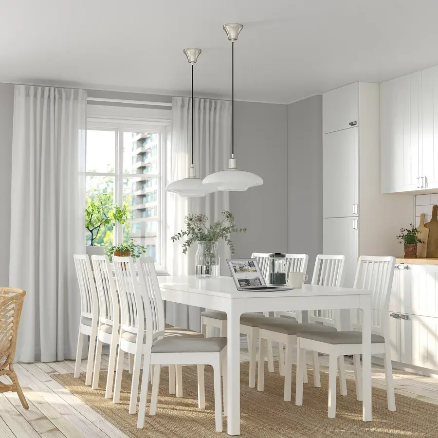 ИКЕА IKEA Каждый стол уникален, с различной текстурой и естественными цветовыми переходами, которые являются частью очарования дерева. Один человек может быстро и плавно разложить стол перед приходом гостей. Продуманный дизайн означает, что столешница не имеет швов, когда вы используете стол, не расширяя его. Дополнительный лист можно хранить в пределах легкой досягаемости под столешницей. Ножки стола всегда находятся в углах столешницы, даже когда стол выдвинут, поэтому под столом достаточно места для стульев. почему бы не смешать его с другими стульями из ИКЕА. Оригинальная икея/ikea