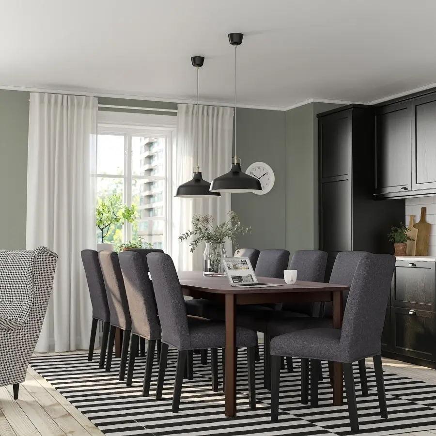 Стол и 8 стульев - STRANDTORP / BERGMUND IKEA/ СТРАНДТРОП/ БЕРГМУНД ИКЕА, 205х95х75 см, коричневый/серый