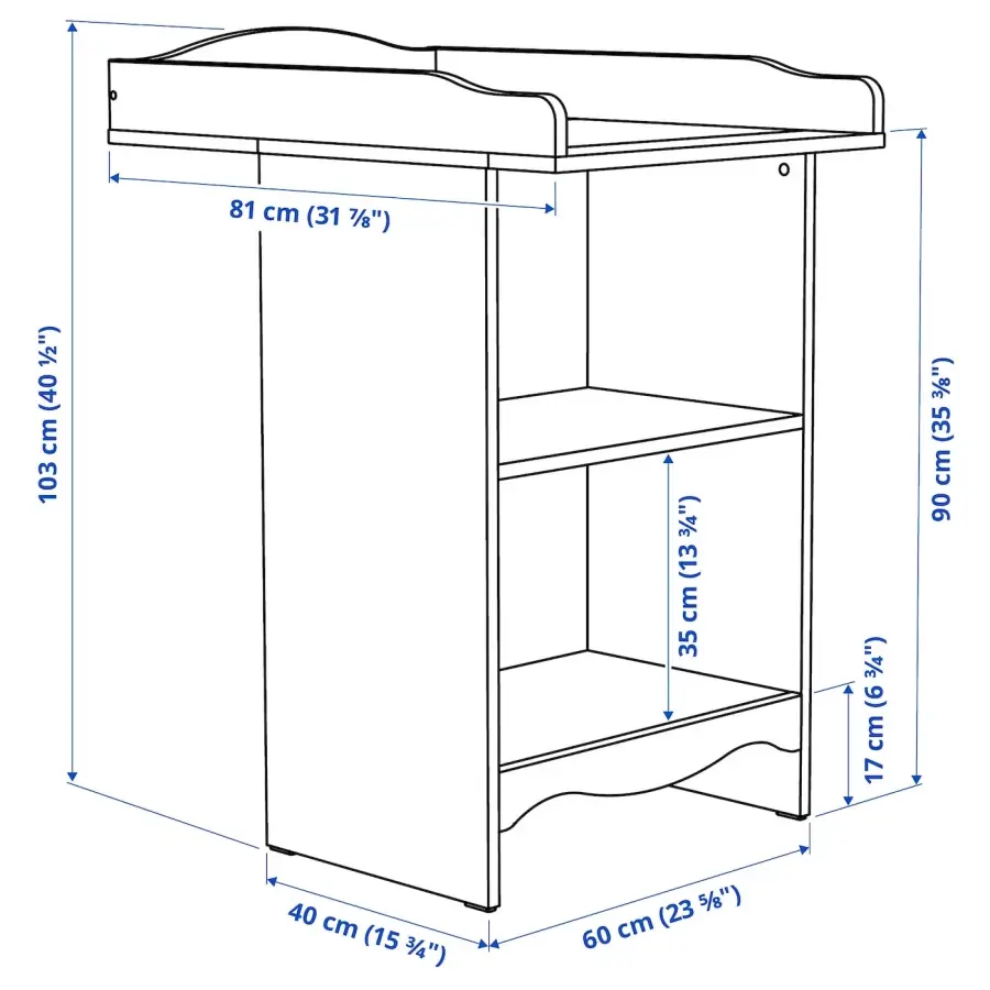 ИКЕА IKEA Удобная высота для пеленания ребенка. Практичное место для хранения в пределах досягаемости: вы всегда можете держать руку на своем ребенке. Вы легко превращаете пеленальный столик в вместительную полку, когда ваш ребенок подрастет. Между полкой пеленального столика и стеной есть пространство, куда вы можете положить корзину для белья или что-то еще, что вы хотите спрятать. Пространство имеет глубину 29 см и высоту 80 см. Оригинальная икея/ikea