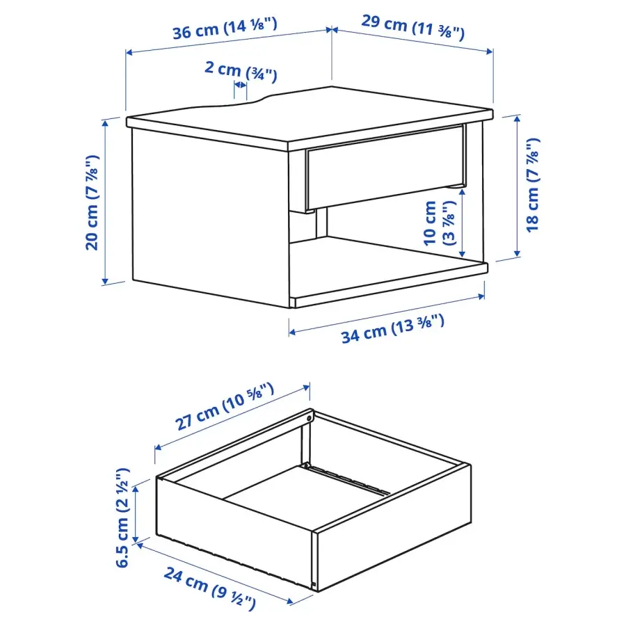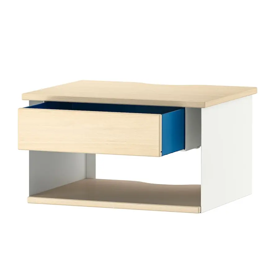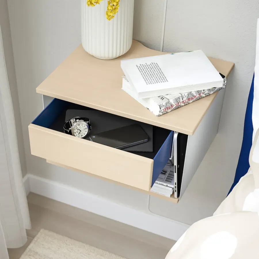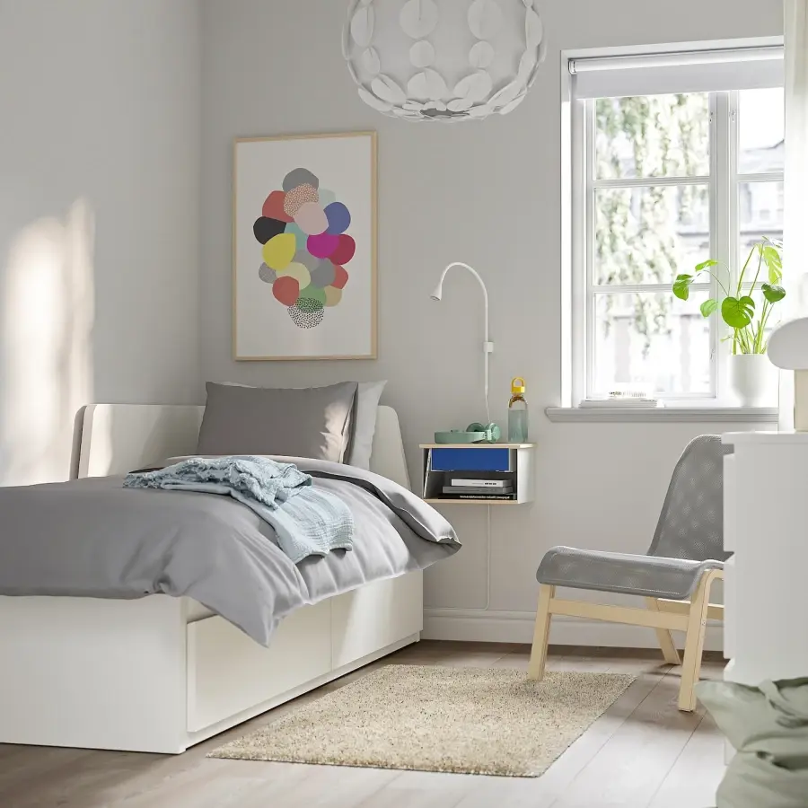 ИКЕА IKEA Компактная прикроватная тумбочка с удивительным цветовым акцентом и продуманным местом для хранения вещей, как открытого, так и закрытого типа. Также в нем имеется отверстие для кабелей, а благодаря настенному креплению он идеально подойдет для кровати с выдвижными ящиками. Оригинальная икея/ikea