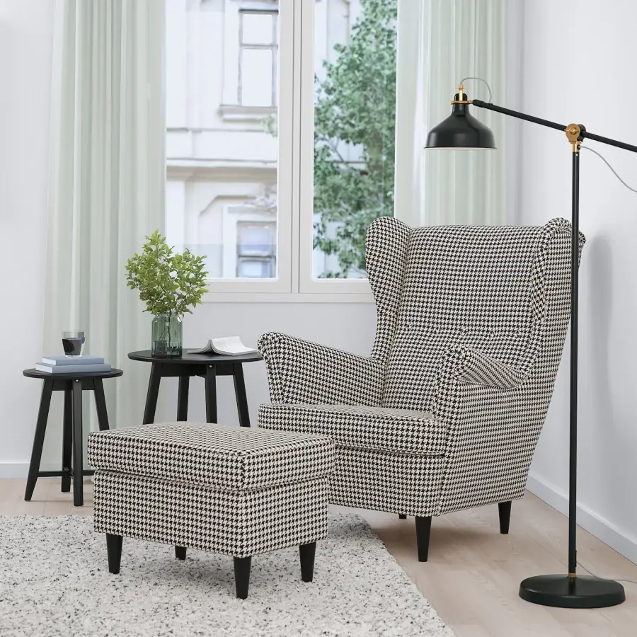 ИКЕА IKEA Это кресло и подставка для ног — идеальное сочетание, если вы хотите вытянуться, дать ногам отдохнуть и сесть очень удобно и расслабленно. Вы можете легко переместить подставку для ног туда, где она вам нужна, и использовать ее в качестве дополнительного сиденья, например, когда к вам в гости друзья. Кресло с подголовником имеет высокую спинку, которая обеспечивает дополнительную поддержку шеи, так что во время отдыха вы можете откинуть голову назад. Круглые подлокотники, мягкие линии и привлекательная обивка придают этому креслу ощущение мягкости и уюта. Гарантия 10 лет. Прочтите об условиях в гарантийной брошюре. Оригинальная икея/ikea