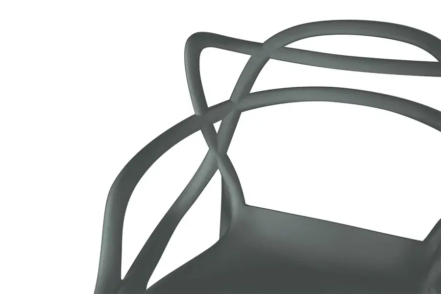 Верхняя часть изделия представляет собой причудливую конструкцию, образующую спинку и подлокотники. Соединяющие опоры перекладины служат удобной подставкой для ног. Сидеть на таком стуле удивительно комфортно, а в интерьере он станет эффектной изюминкой.